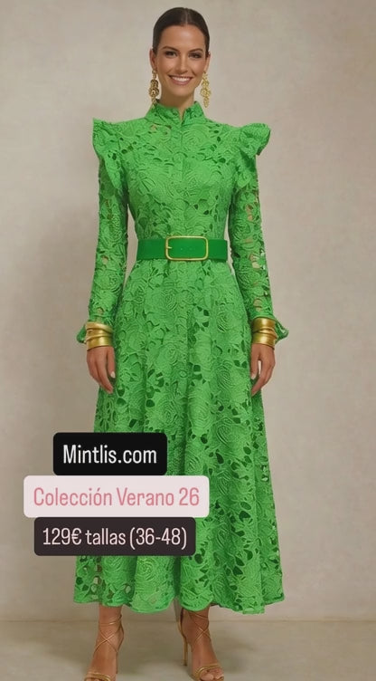 Kate embroidered and brocade dress with belt included, sizes (36-48) (video)