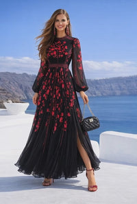 Empire dress in pleated chiffon, 3 prints, sizes (36-50) (video)