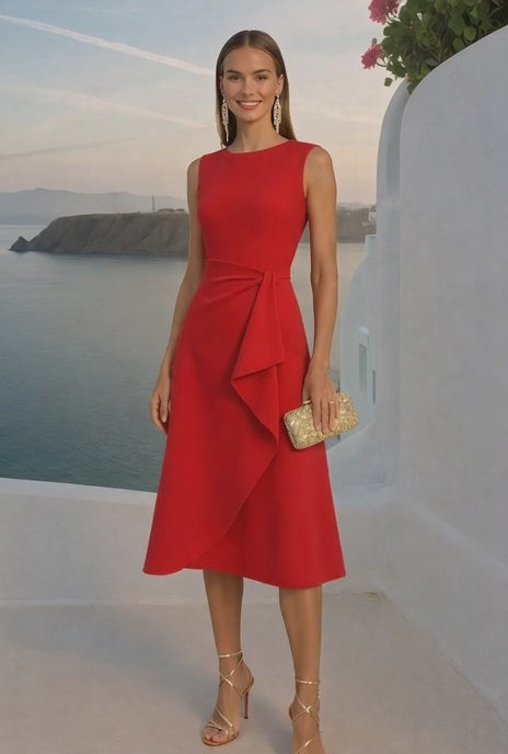 Vestido Cerdeña de crepe de algodón licra elastane, 7 colores tallas (36-48) (vídeo)