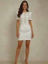 Vestido Martin brocado y bordado de algodón licra, color crema , 36-46)(vídeo)