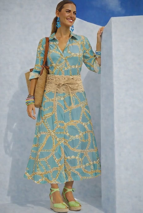 Vestido Casilda estampado camisero botones bolsillos, fajín incluido, tallas (36-52) (vídeo)